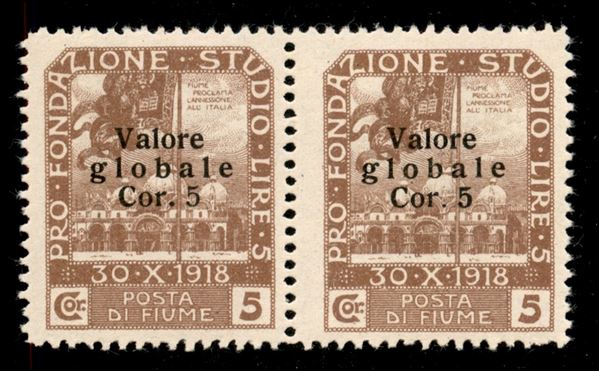 1920 - 5 su 5 corone (110 varietà + 110) - coppia orizzontale - cifra sottile a sinistra - gomma integra - non catalogato - Cert. AG