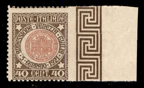 1921 - Venezia Giulia - 40 cent (115e) non dentellato a destra - gomma integra - Bolaffi