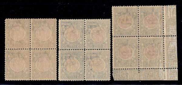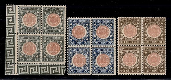 1921 - Venezia Giulia (113/115) - serie completa in quartine - ottimamente centrate - gomma integra