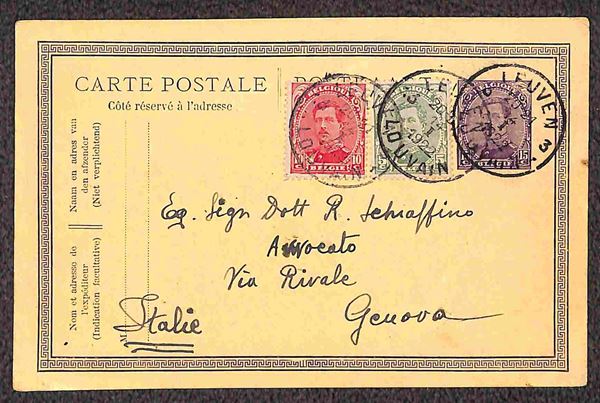 1922 - due cartoline postali con affrancature complementari per Genova