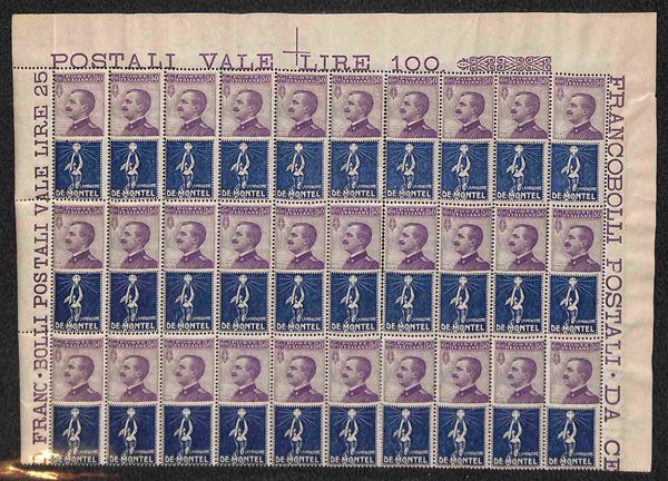 1924 - 50 cent De Montel (12) - blocco di 30 bordo foglio da tre lati - gomma integra