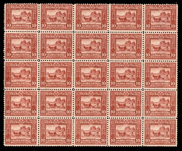 1928 - 10 cent Aratura (130) - blocco di 25 - gomma integra - 20 pezzi (pos. 6/25) ottimamente centrati - ottimo insieme (4.500+)