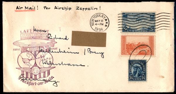 1936 (11 maggio) - Zeppelin - Lakehurst Francoforte - aerogramma del volo