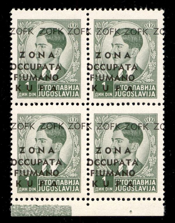 1941 - 1.50 din (3bc) in quartina bordo foglio - soprastampe in basso a sinistra - gomma integra (1080+)