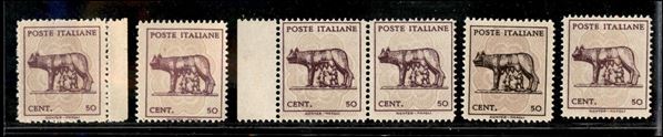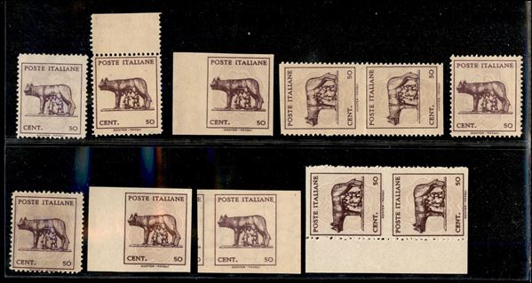 1943/1944 - 50 cent Lupa (515/515A) - insieme di varietà - 11 singoli e 3 coppie nuovi - gomma originale / senza gomma