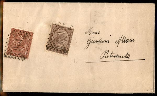 2 cent (15) + 30 cent (19) su circolare a stampa (da Venezia) del 6.2.1875 per Pietrasanta