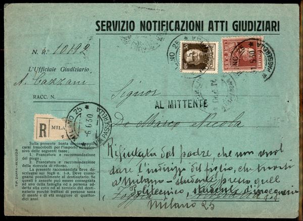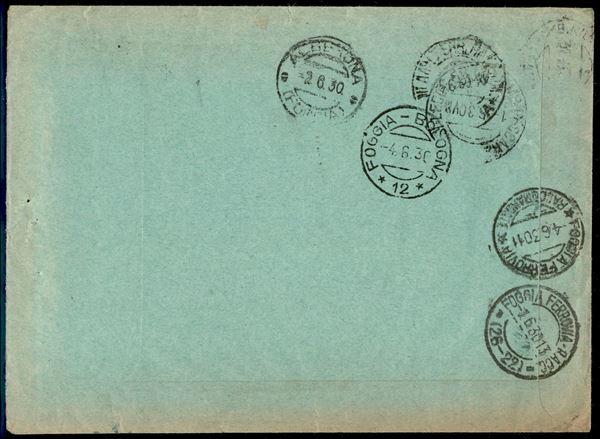 2,55 lire Parmeggiani (216) + 30 cent Imperiale (249) - raccomandata da Milano a Foggia del 31.5.1930