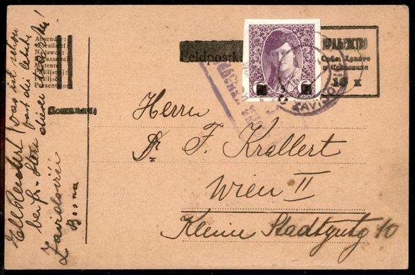 5 heller su 6 (22) su cartolina da Zavidovici a Vienna del 16.1.1920