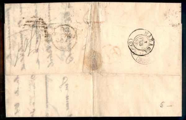 6 pence (30 - tav. 6) isolato su lettera da Londra a Malaga del 30.1.1869