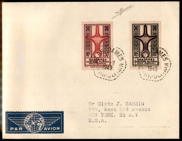 Aerogramma da Ghadames a New York del 7.8.49 affrancato con i due valori di posta aerea (5/6) - Sorani