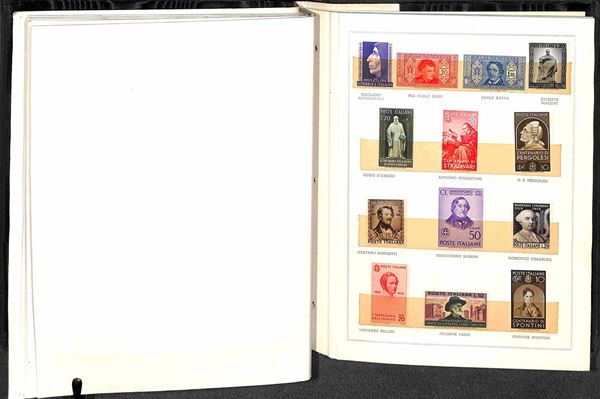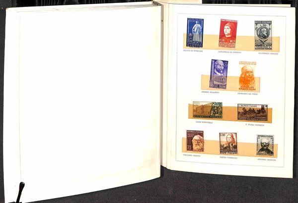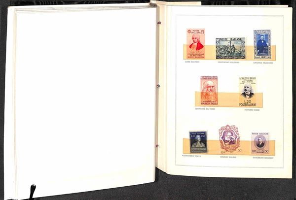 AREA ITALIANA - 1926/1959 - Libro del Ministero delle Poste con all'interno valori nuovi delle serie del periodo a tema Santi e Uomini Illustri - molto bello e in buono stato - da esaminare