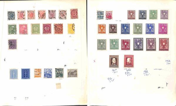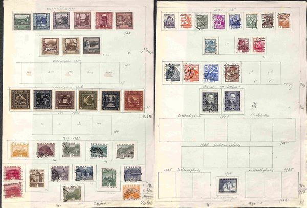 AUSTRIA - 1890/1963 - Collezione di valori nuovi e usati del periodo in pagine d'album e fogli artigianali - buon insieme - da esaminare