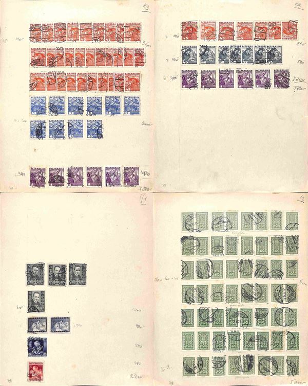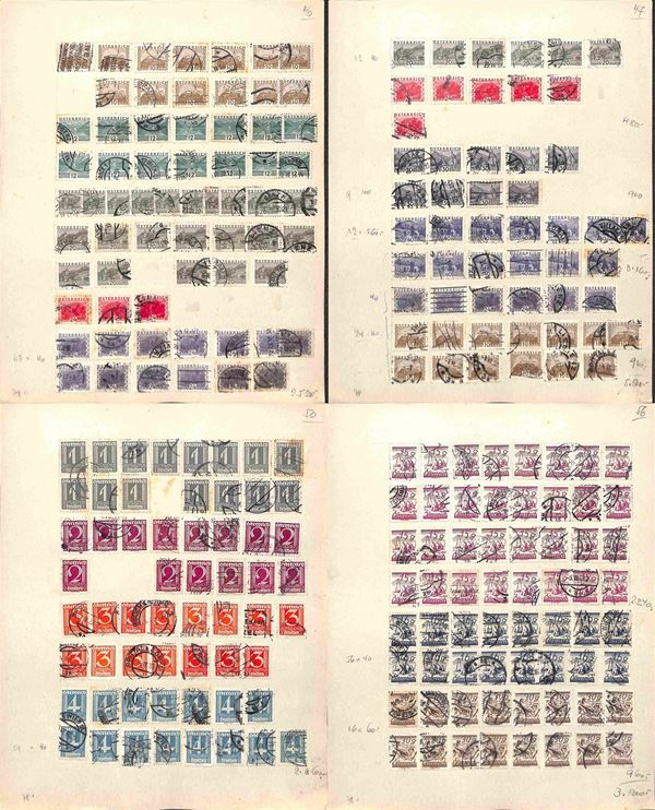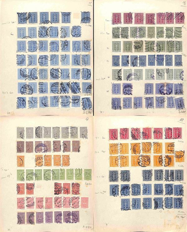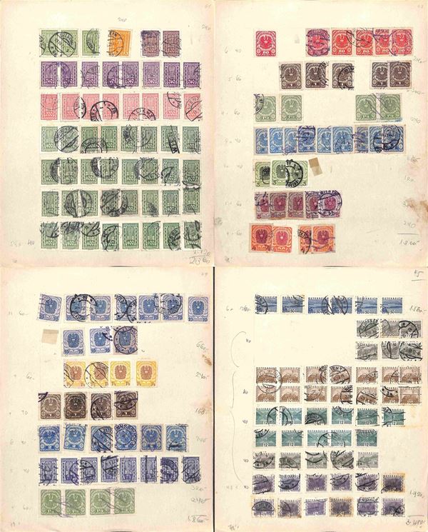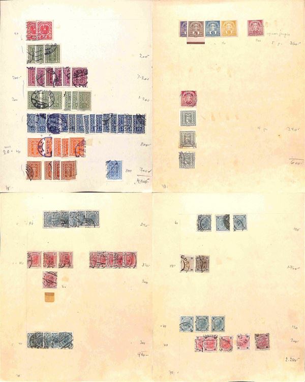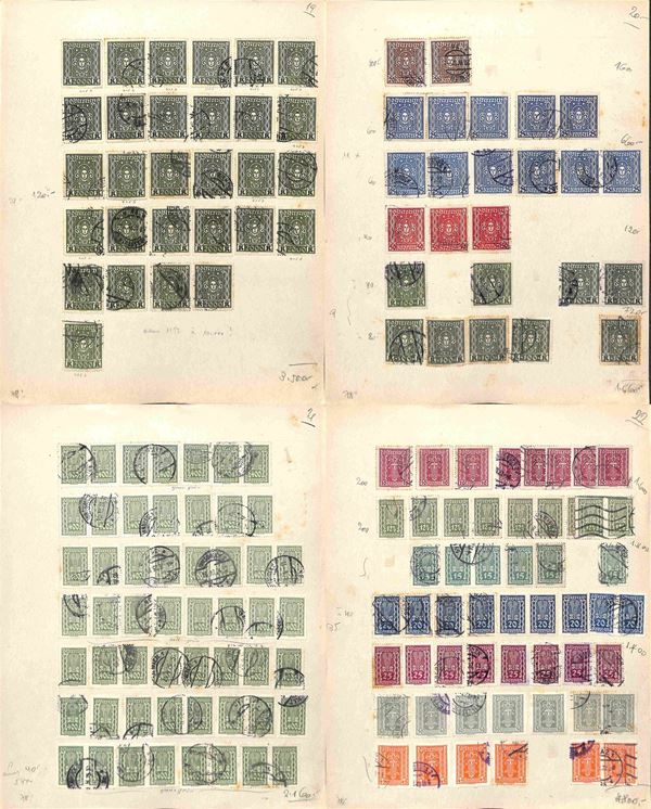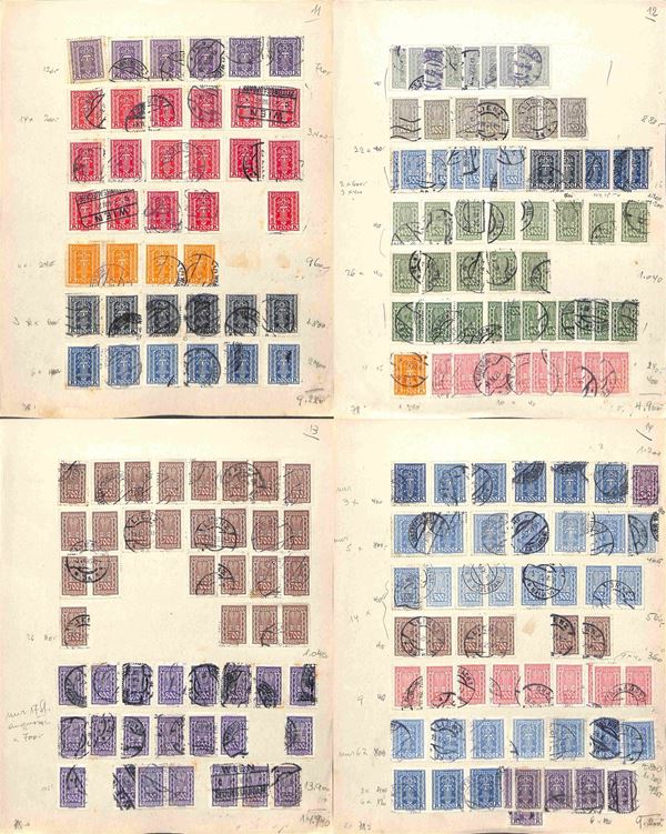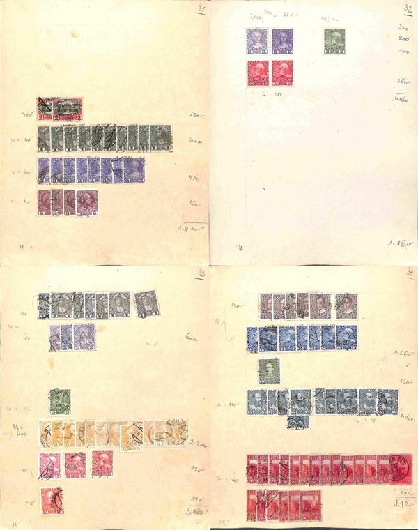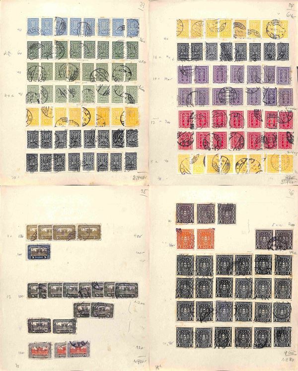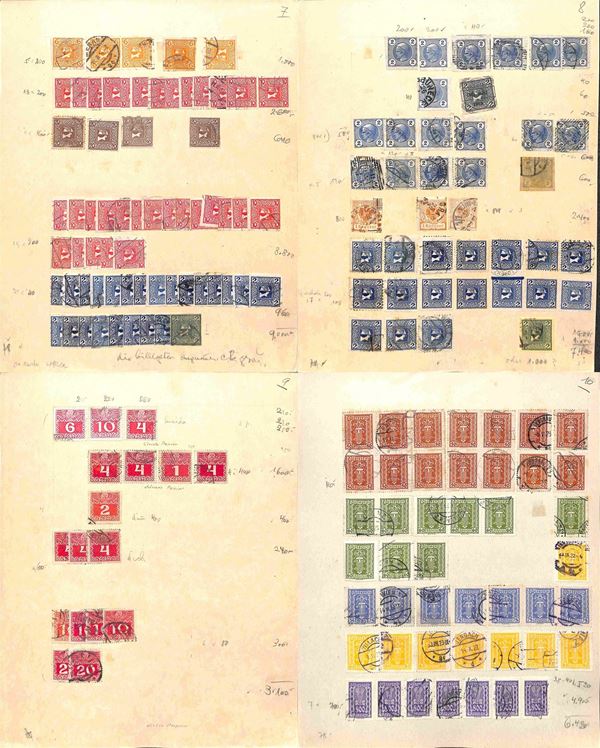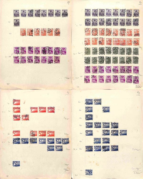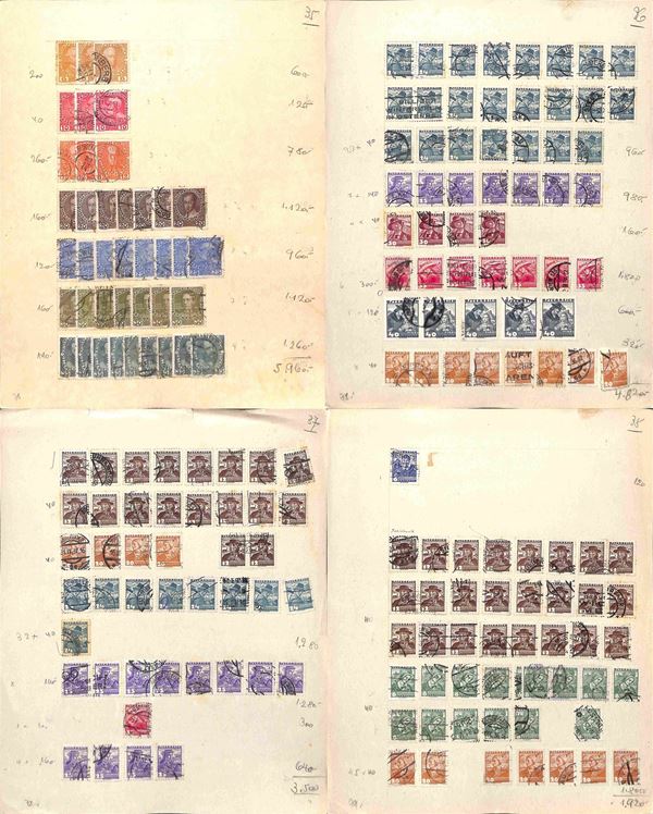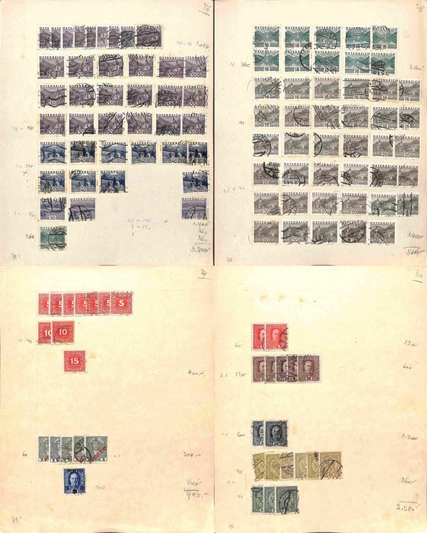 AUSTRIA - 1900/1934 - Accumulazione di migliaia di francobolli usati - applicati su cartoncini - da esaminare