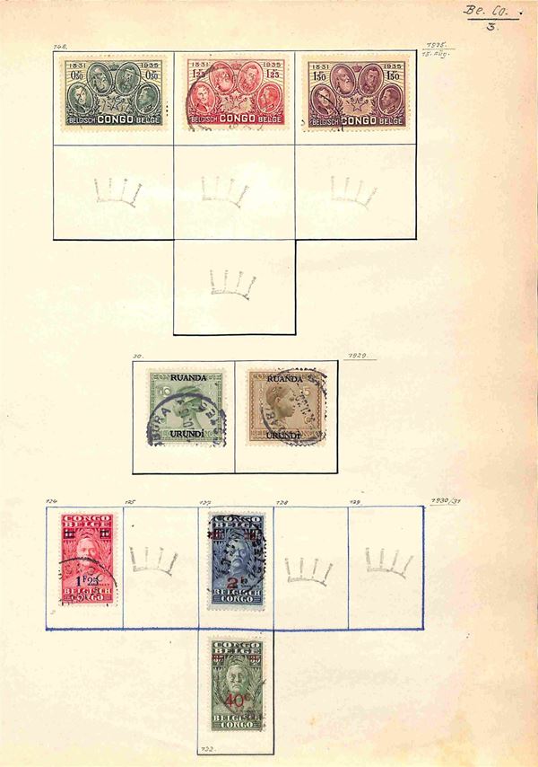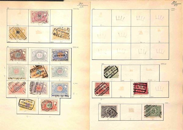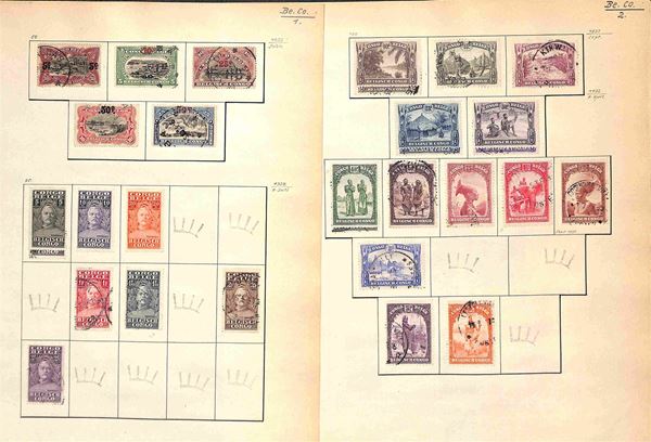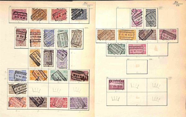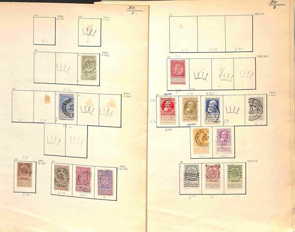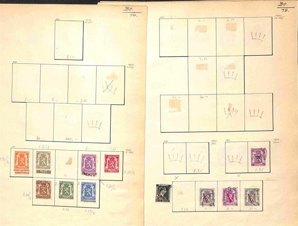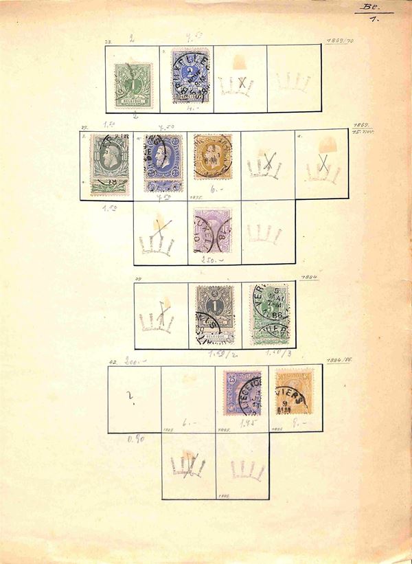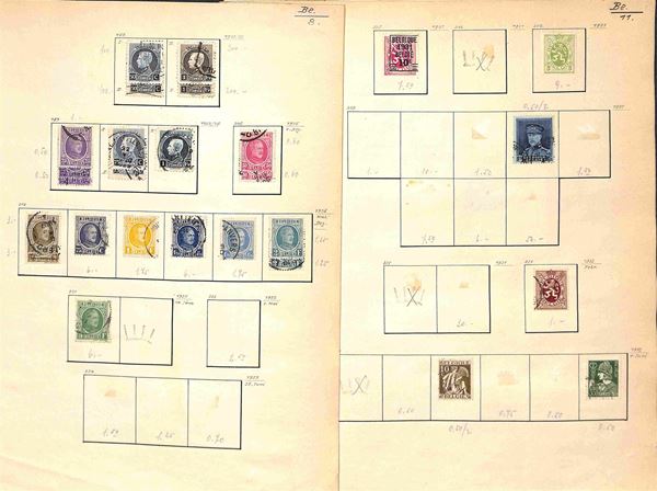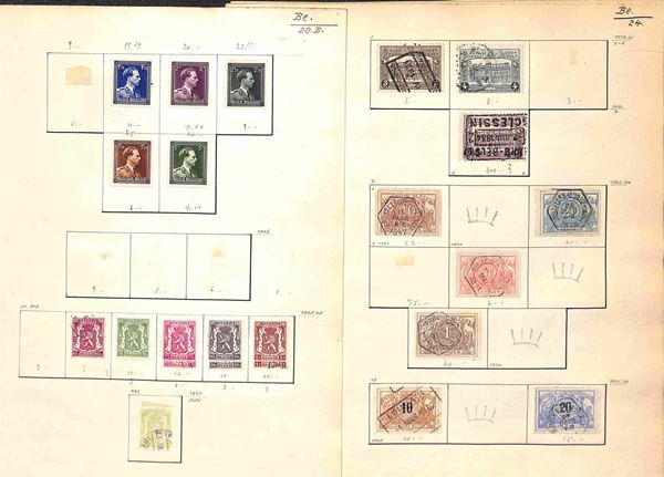 BELGIO - 1869/1945 - Piccola collezione di valori usati del periodo montati su fogli artigianali - buona presenza di servizi - da esaminare