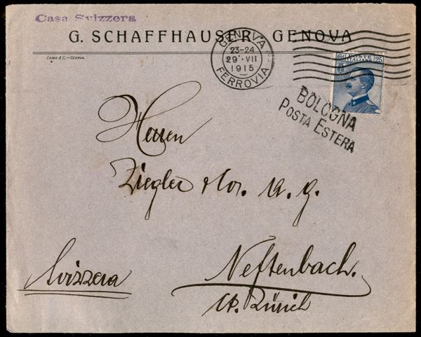 Bologna Posta Estera su 25 cent (83) - busta da Genova a Neftenbach del 29.7.15