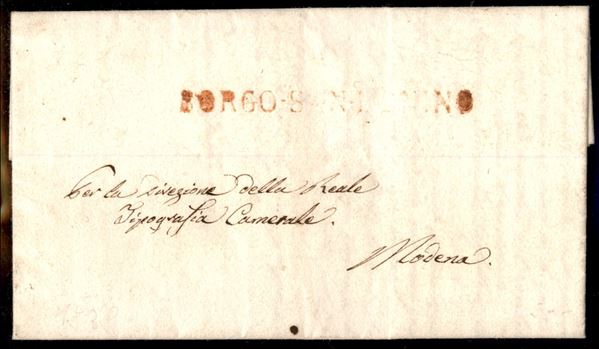 Borgo San Donnino (rosso) - letterina (scritta a Piacenza) per Modena del 11.2.1838 - 15 di tassa al retro