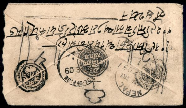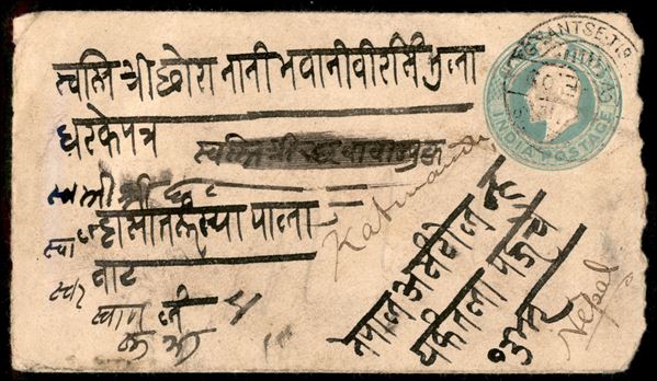 Busta postale da 1/2 anna da Silu Gadhi a Katmandu del 2.2.09