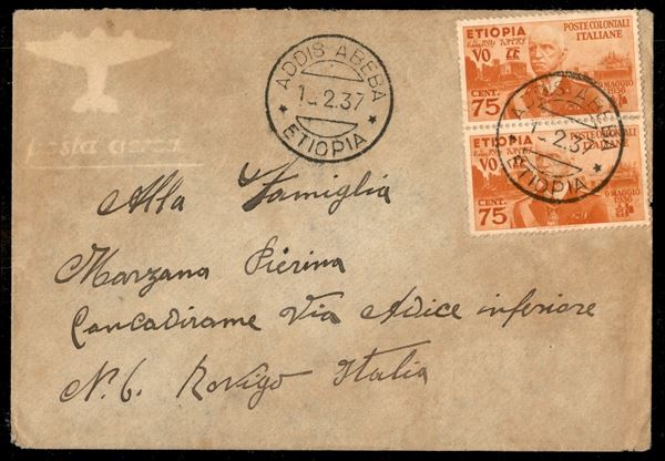 Coppia del 75 cent (6) - aerogramma da Addis Abeba a Rovigo del 13.2.37