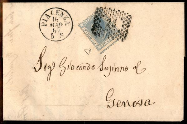 Dentellatura orizzontale spostata - 20 cent (L26ca) su lettera da Piacenza a Genova del 16.5.67 - Diena (2.000)