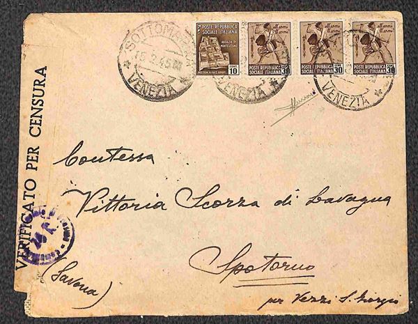 Due buste da Sottomarina a Spotorno del gennaio/febbraio 1945 con affrancature multiple - Sorani