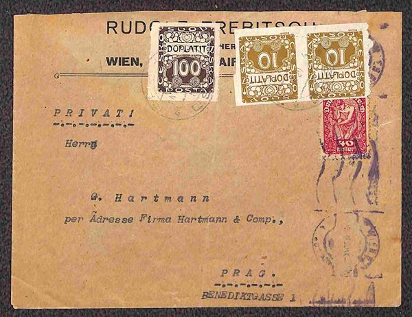 Due buste da Vienna a Praga del 1920 tassate in arrivo