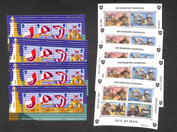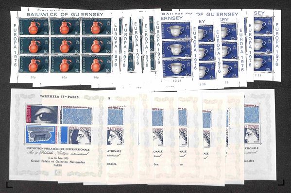 EUROPA - 1974/1977 - Lotto di 52 foglietti nuovi con diverse ripetizioni di jersey Guernsey Isle of Man Francia e San Marino - interessante