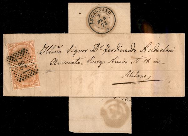 Fascetta a croce (integra) affrancata con coppia del 10 cent (T17) da Lugagnano a Milano del 7.2.73 - R. Diena