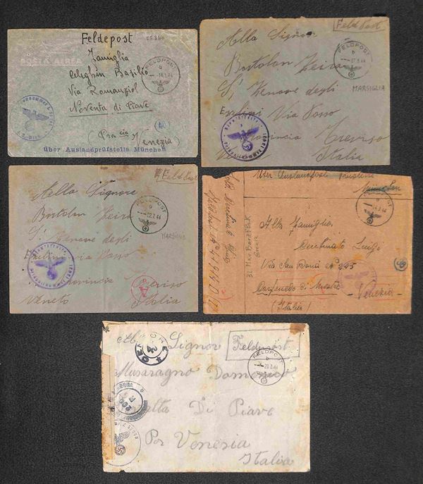 Feldpost - 1944/1945 - 15 buste + 2 cartoline del periodo per l'Italia
