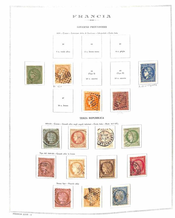 FRANCIA - 1849/1980 - Collezione avanzata di valori nuovi e usati del periodo in un album Marini più un classificatore - bellissimo insieme con molti servizi e varietà anche delle prime emissioni - valore di catalogo secondo conferente oltre 20000 € - merita attento esame