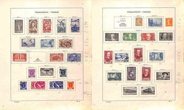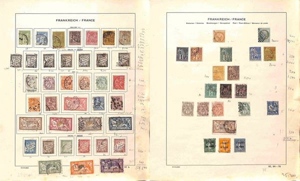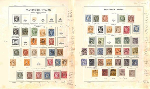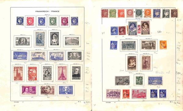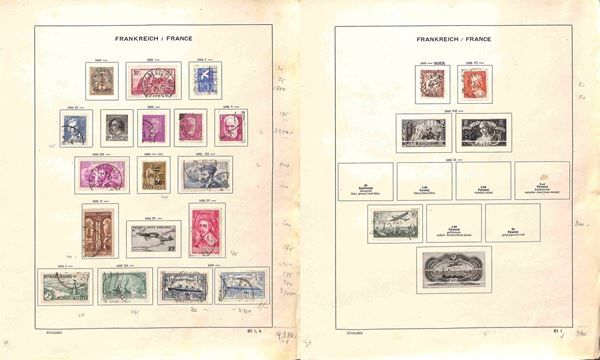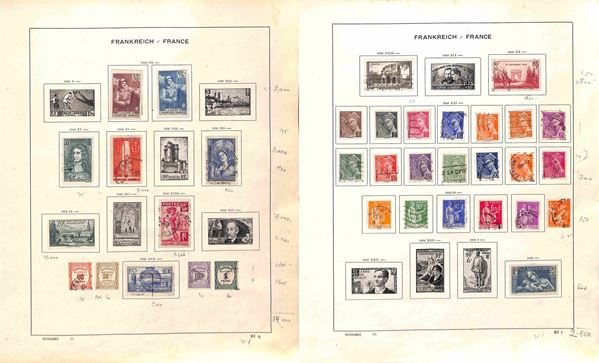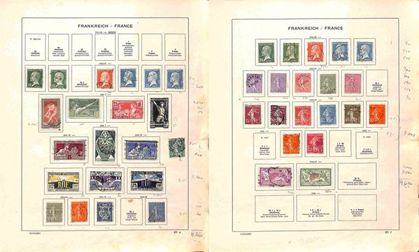 FRANCIA - 1853/1941 - Collezione di valori e serie complete del periodo principalmente usati montati su fogli d'album Schaubek - ottimo insieme da esaminare