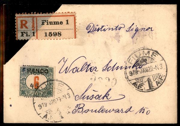 Franco/45 su 6 filler (29cbb) con sbarretta a cavallo - raccomandata per Susak del 29.1.19 (1.000)