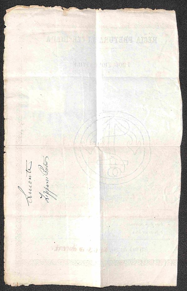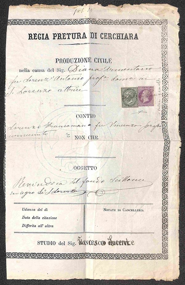 Gemelli - un 5 cent (T16) + un 5 cent Marca da Bollo (8) annullati a penna su documento - R. Diena
