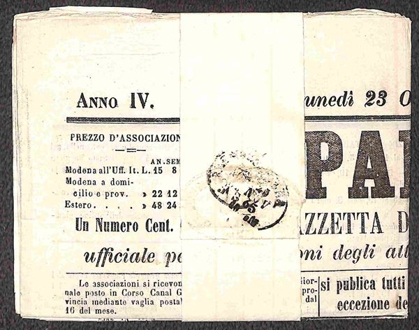 Giornale spedito da Carpi a Correggio con coppia del 1 cent (L14) del 24.11.65