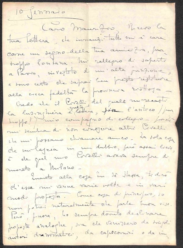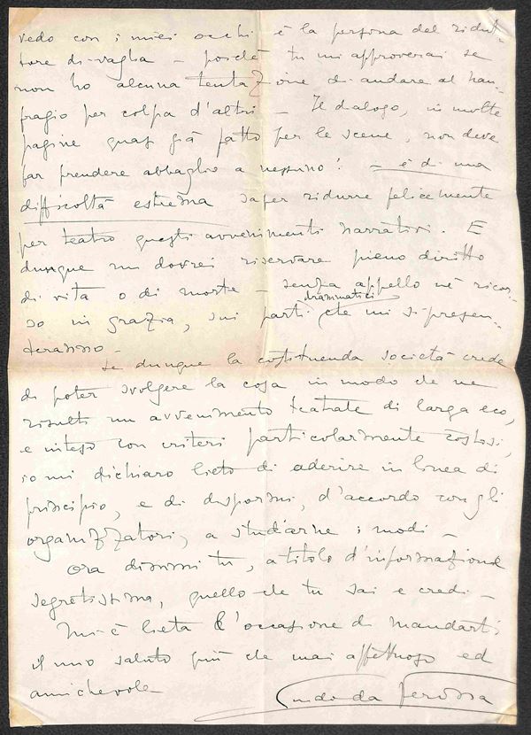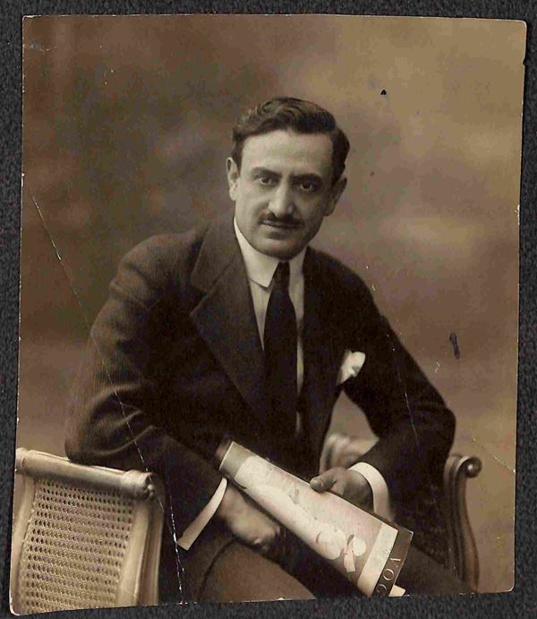 Guido da Verona - lettera autografa - 2 fogli manoscritti (3 facciate) con unita fotografia dello scrittore