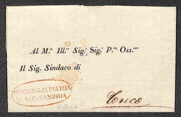 Ispezione di Polizia di Alessandria (rosso) - circolare per Tonco del 15.9.1818 - sul controllo di Osterie e Bettole