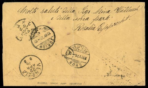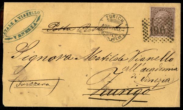 Lettera per Zurigo (Svizzera) del 19.4.76 affrancata con un 30 cent (T19) annullato con Numerale 196 e rispedita a Venezia