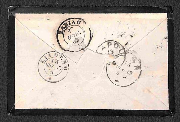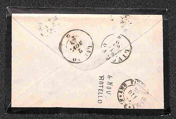 Lucca (cerchio piccolo - Bargagli P.ti 8) - tre bustine col 15 cent (13) per Rotello (Marche) dell'ottobre (28 - 31) e novembre (13) 1863 - annullamento usato solo 2 mesi - raro insieme d'archivio - cert. AG