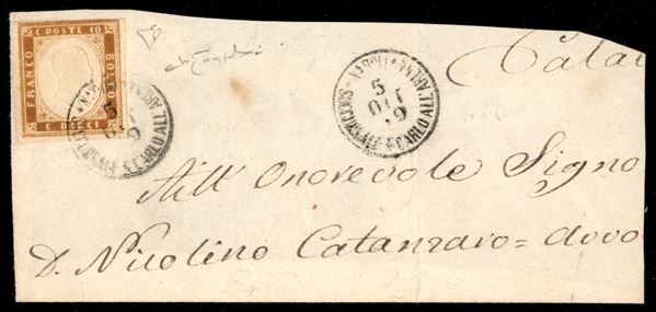 Napoli Succursale S. Carlo all’Arena (P.ti R1) - 10 cent (14Df - Sardegna) su frammento del 5.10.62 - Diena + cert.oro Raybaudi