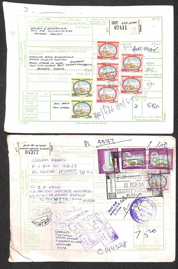 PAESI ARABI - Emirates + Bahrain + Kuwait - Bollettini Pacchi - accumulazione di centinaia di bollettini (fine 900) usati con varie affrancature - qualità mista - da esaminare
