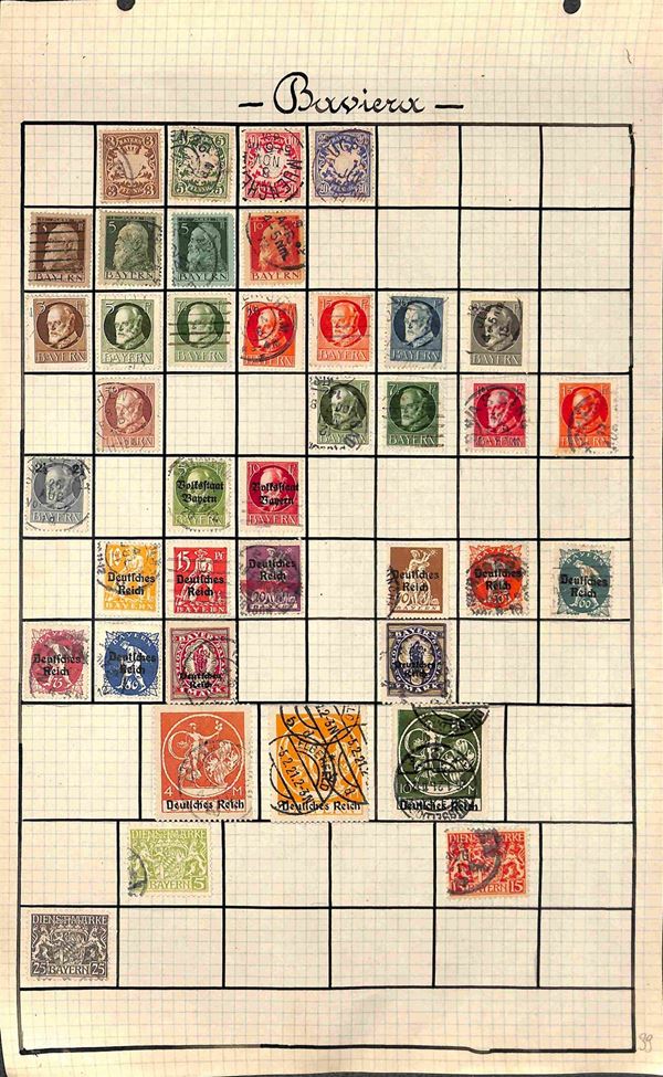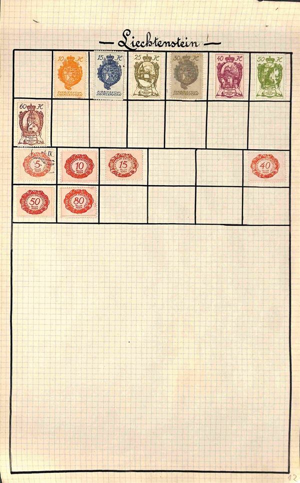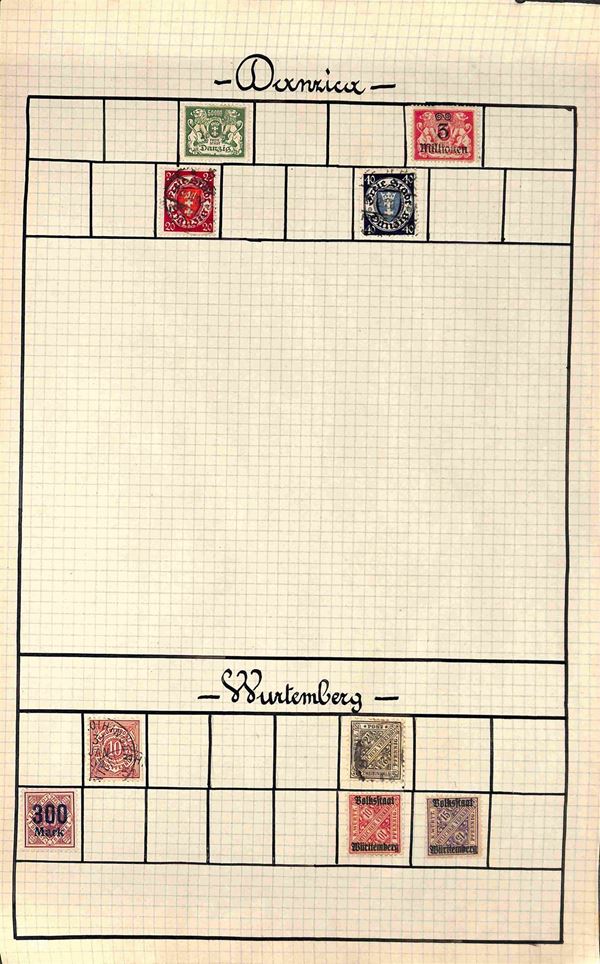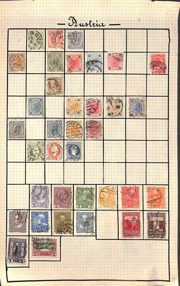 PAESI EUROPEI - 1890/1940 circa - Insieme di valori nuovi e usati di diversi paesi europei montati su 45 fogli artigianali - da esaminare