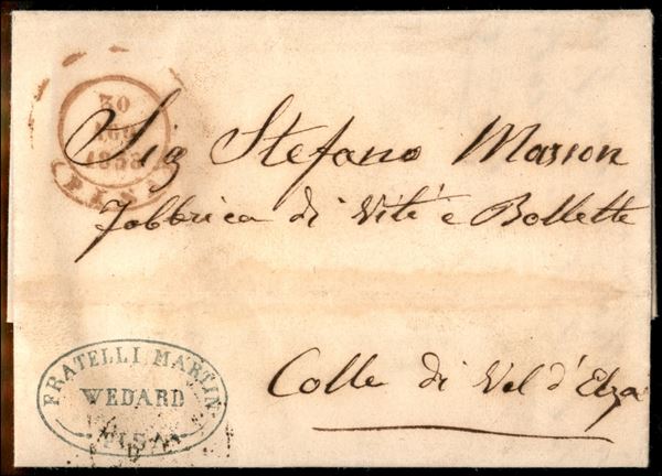 Pisa (rosso - P.ti R2) - lettera per Colle Val d’Elsa del 30.8.58 (porto pagato in denaro)