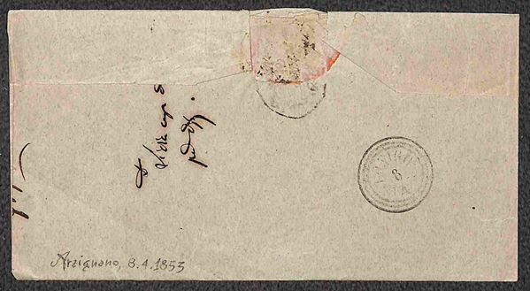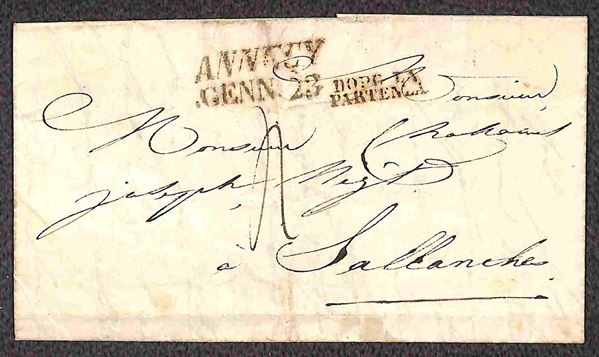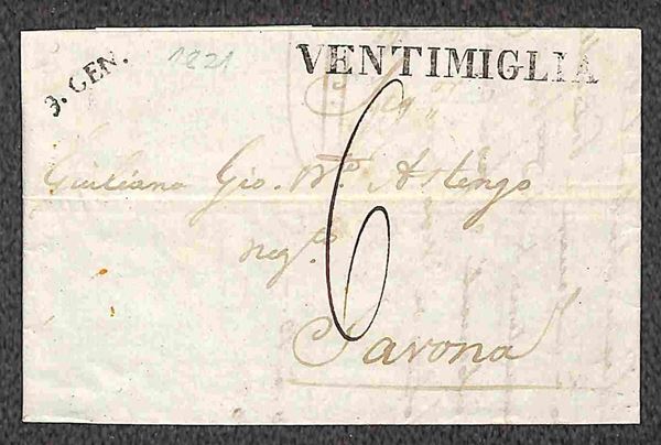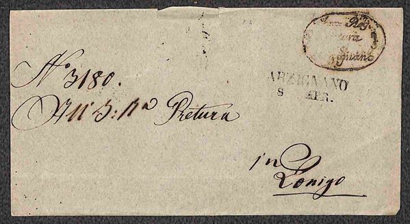 PREFILATELICHE - 1821/1853 - Insieme di 5 lettere del periodo con annulli di Arzignano Annecy Ventimiglia e Lanzo - da esaminare
