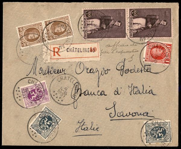 Raccomandata da Chatelineau a Savona del 6.2.1931 con affrancatura multipla
