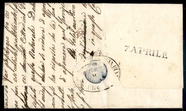 Repubblica Romana - Timbro ovale su lettera da Velletri a Carpineto del 4.4.49