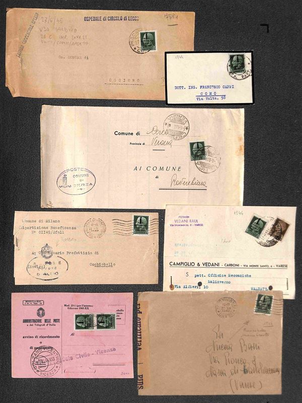 REPUBBLICA SOCIALE ITALIANA - 1944 - 25 cent Fascetti (491) - venti corrispondenze con varie affrancature anche multiple e miste - da esaminare