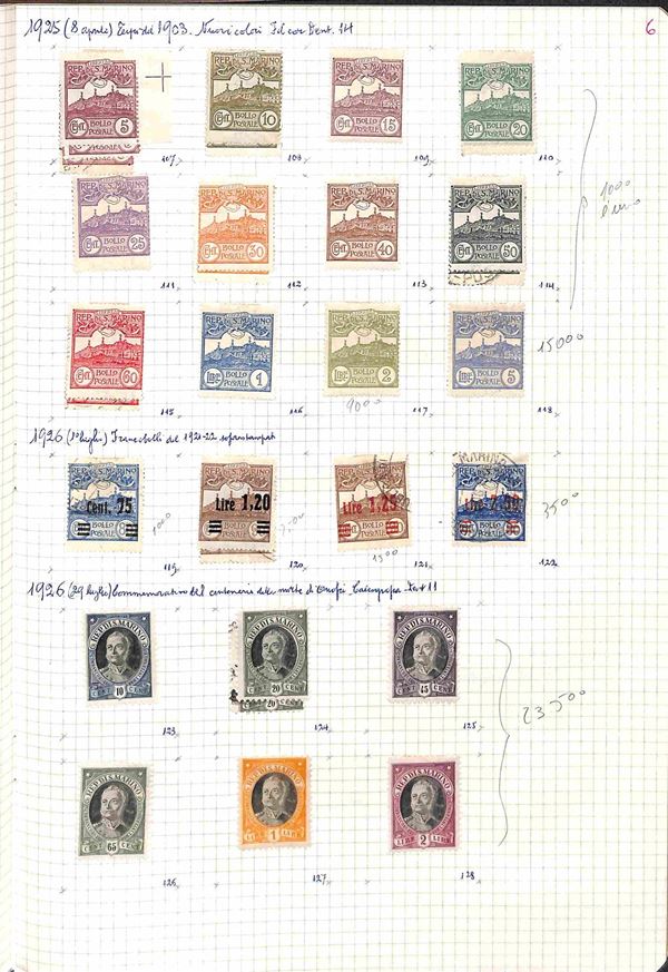SAN MARINO - 1877/1983 - Collezione avanzata del periodo in 2 album Marini pił 5 quaderni artigianali - discreto insieme - merita esame