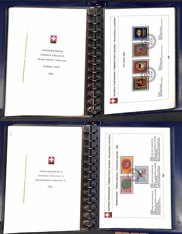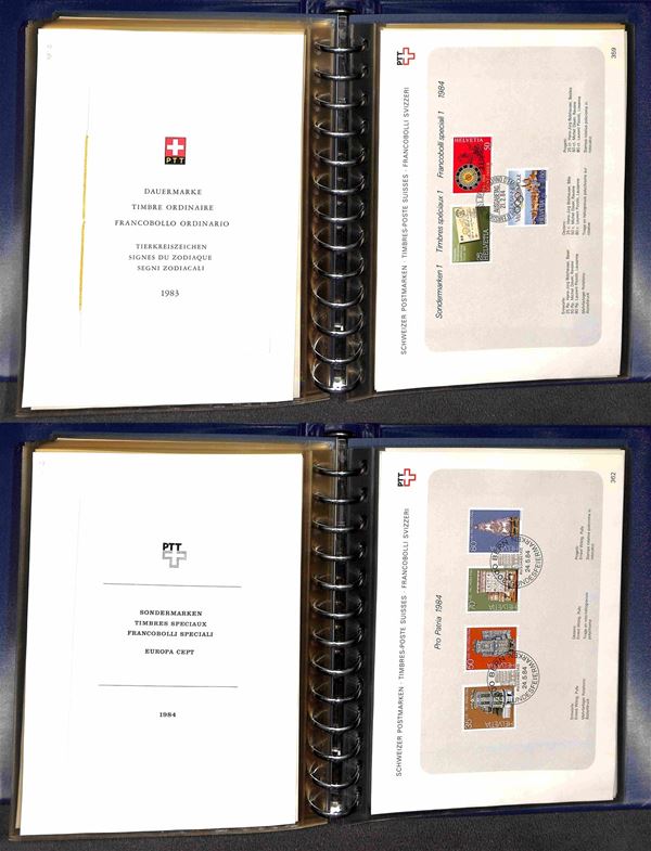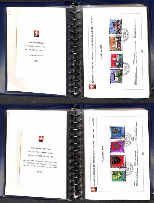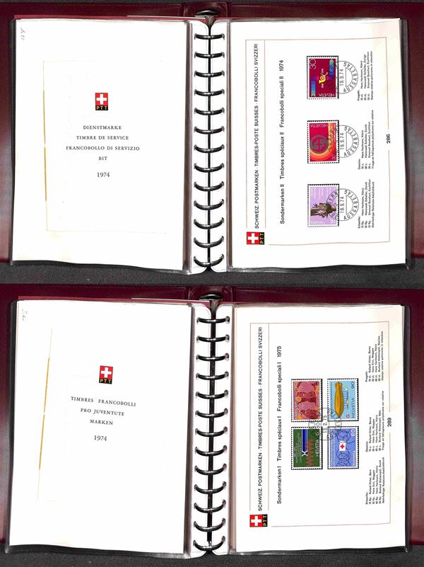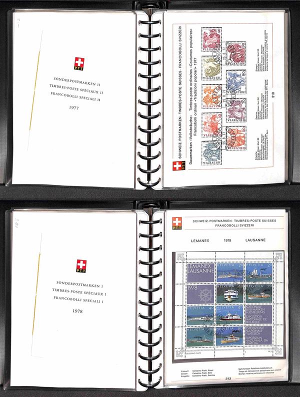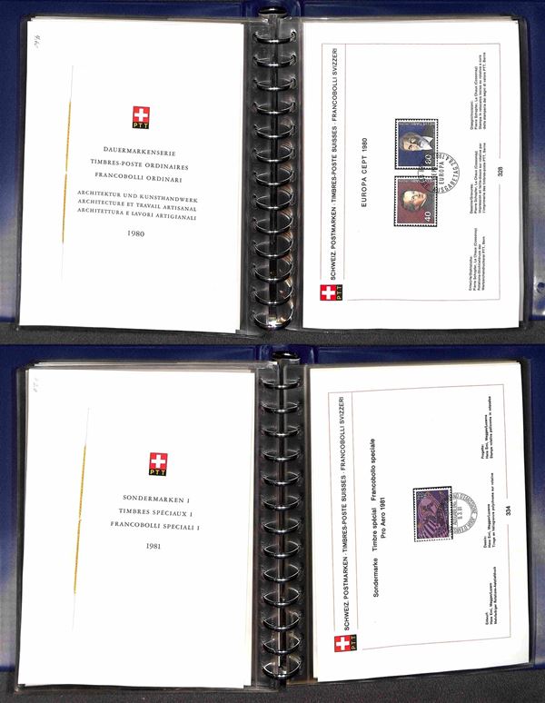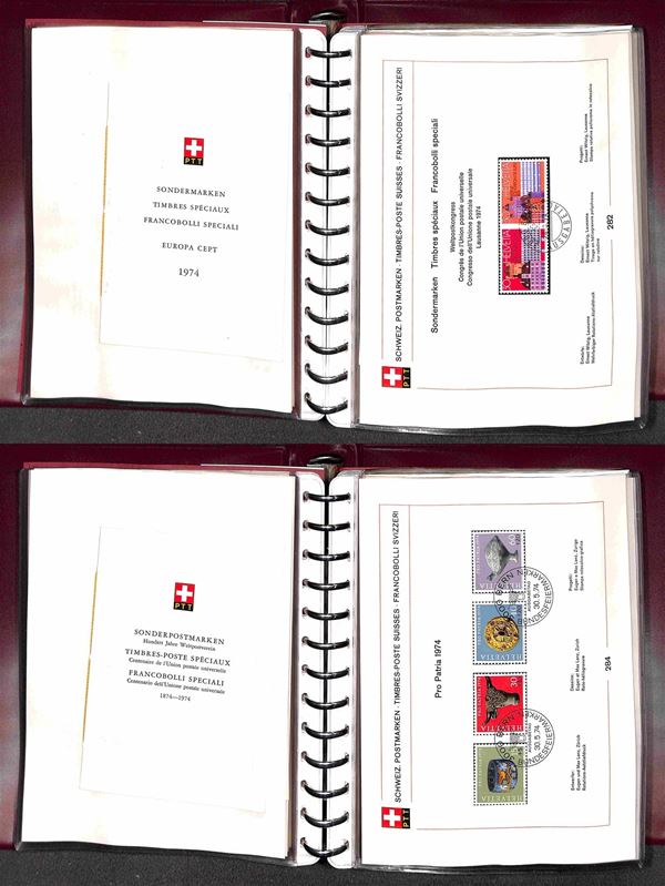 SVIZZERA - 1956/1984 - Collezione di foglietti PTT e libretti con annullo primo giorno - mancanze nel primo periodo ma completa dal 1974 (n. emissioni 152/278 non completi 279/365 completi) - ottima collezione montata in 5 piccoli raccoglitori - molto bella