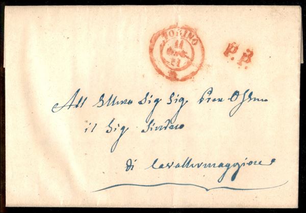 Torino + P.P. (in rosso) - lettera per Cavallermaggiore del 11.5.1851