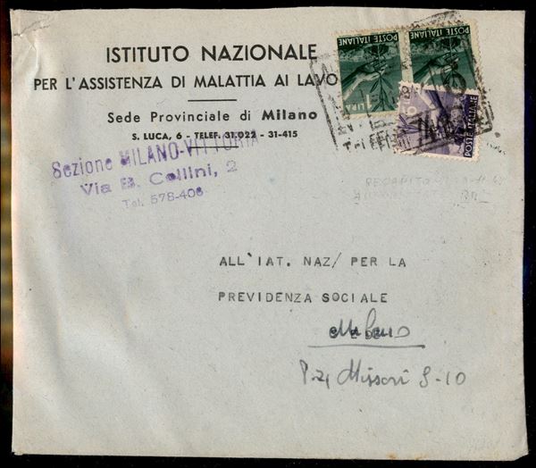 Valori Democratica (550 coppia + 556) usati come Recapito su busta per cittą - Milano 8.11.1947