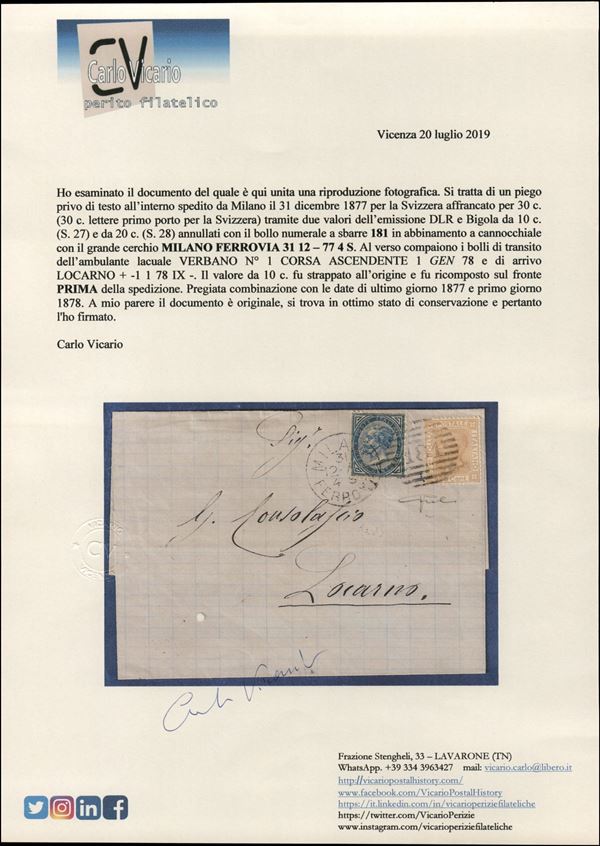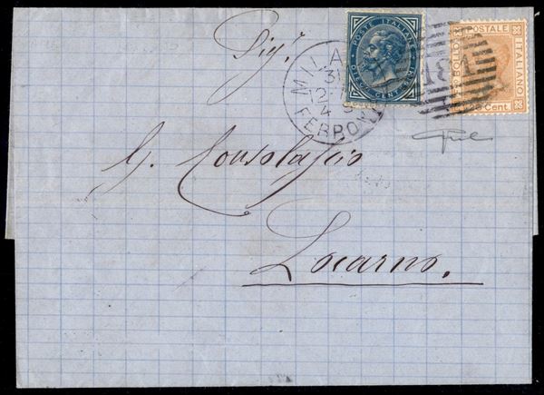 10 cent (27) + 20 cent (28) - emissione completa su busta da Milano a Locarno del 31.12.77